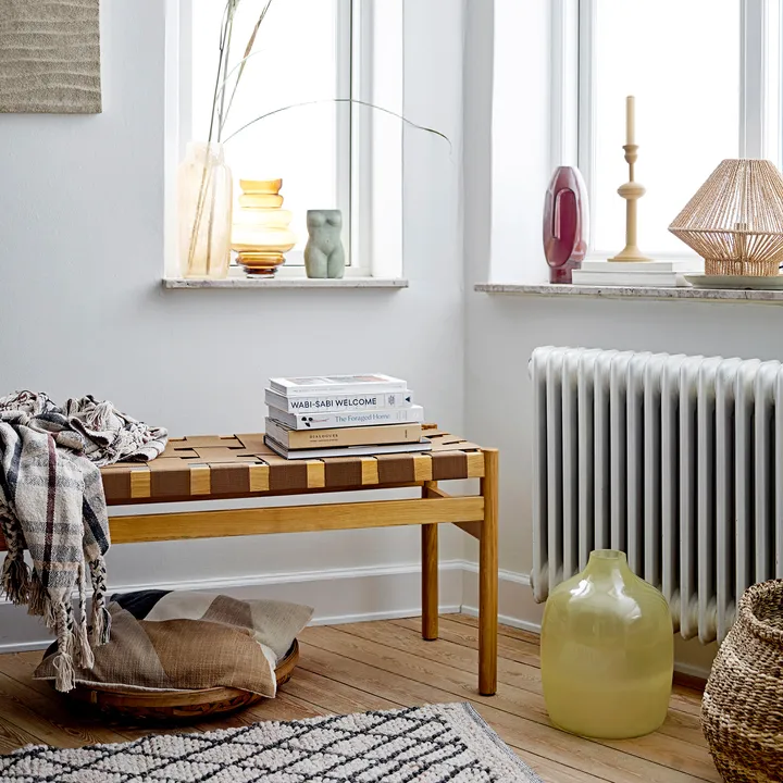 Idima glassvase fra danske Bloomingville er en stilig vase med vakker spraymalt overflate i naturlige toner. Vasen, som har en bred bunn og en smal åpning, bringer tankene til en vinkaraffel. I denne store vasen kan du plassere en langstilket blomsterbukett eller et ris, som sammen med vasen dekorerer hjemmet ditt.