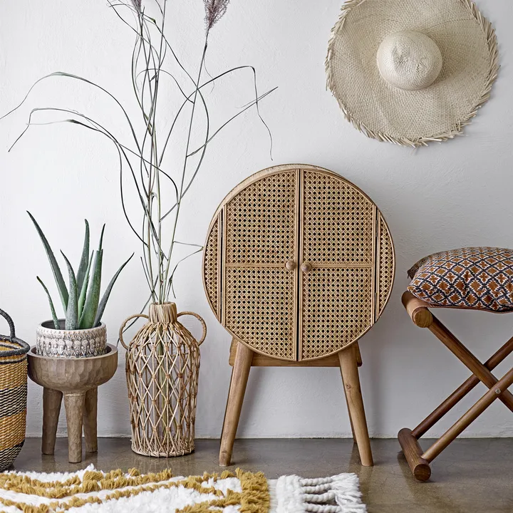 Otto er et rundt skap på ben fra det danske merket Bloomingville. Skapet er laget av rotting med en treramme. Inne i skapet er det en hylle for oppbevaring. Otto er et lite oppbevaringsskap som er enkelt å plassere, og som passer like bra i soverommet som i stuen.