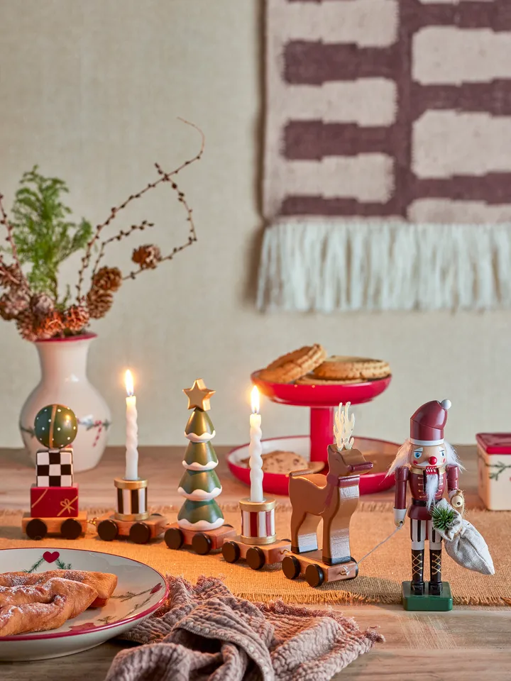 Vadim juletog fra Bloomingville er laget av FSC-sertifisert tre og forestiller et dekorativt tog med julefigurer, der nissen sitter fremst. Med sine varme julefarger skaper det en koselig atmosfære hjemme. Plasser det på bordet, hyllen eller vinduskarmen for å skape julestemning.