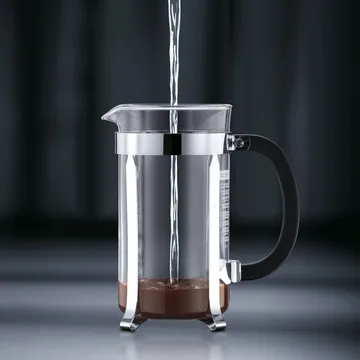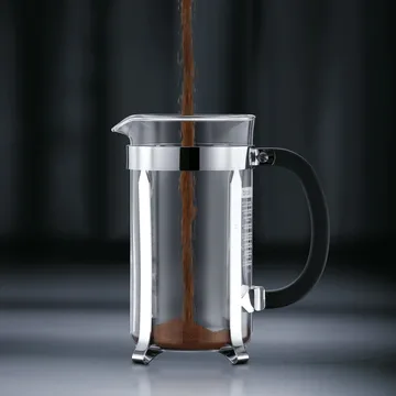 Den klassiske franske kaffepressen Chambord ble designet på 1950-talet av Bodum. Kaffepressen er laget i blankt rustfritt stål og den goda kvaliteten gjør at den holder i mange år. Presskannen Chambord kommer med et sort håndtak som gir godt grep samtidig som det gir kannen et stiligt design. Det franske press-systemet har alltid vært den enkleste og ultimate måten å brygge smaksrik kaffe på, bare sett presskannen på bordet og nyt god nybrygget kaffe! Velg mellom forskjellige størrelser.