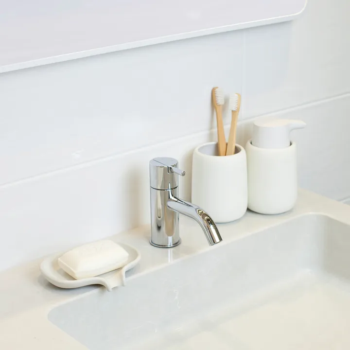 Soap Saver Flow såpefat med dreneringsrør betong - Hvit - Bosign