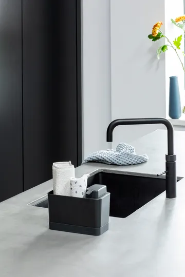 Brabantia oppvaskorganiserer med såpepumpe lar deg samle alt oppvasktilbehør som oppvaskbørste, svamp og propp på ett sted så det ikke ligger spredt rundt ved vasken. Såpepumpen passer perfekt i beholderen, men kan selvfølgelig også settes ved siden av hvis du trenger mer plass. Under beholderen sitter det et brett som fanger opp dryppende vann, og den sklifrie overflaten under brettet sørger for at oppvaskorganisereren ikke sklir rundt på det glatte underlaget.