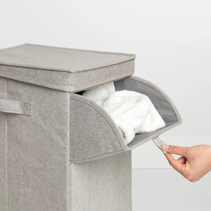 Denne skittentøyskurven fra Brabantia er både praktisk og fin. Den har to åpninger: en på toppen og en på framsiden hvilket gir flere bruksmuligheter og gjør det enkelt å plukke ut og inn klesvask. Skittentøyskurven kan dessuten stables og brettes sammen, noe som tillater deg å sortere vasken og enkelt flytte den rundt.