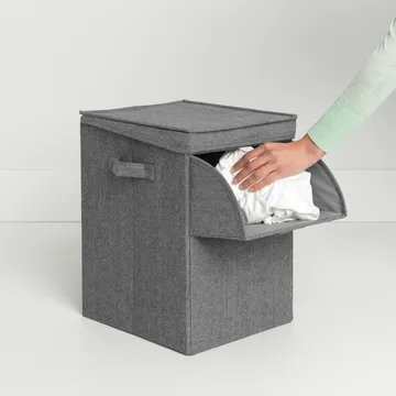 Denne skittentøyskurven fra Brabantia er både praktisk og fin. Den har to åpninger: en på toppen og en på framsiden hvilket gir flere bruksmuligheter og gjør det enkelt å plukke ut og inn klesvask. Skittentøyskurven kan dessuten stables og brettes sammen, noe som tillater deg å sortere vasken og enkelt flytte den rundt.
