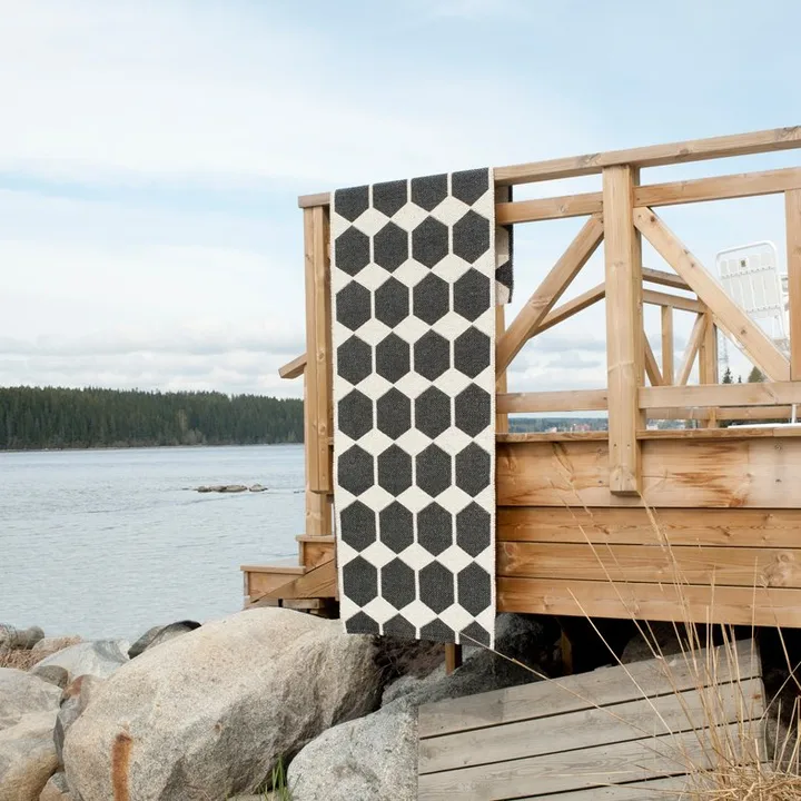 Anna heter det pene, grafisk svarthvite plastteppet fra Brita Sweden. Perfekt til kjøkkenet, entreen, soverommet mm. Flere størrelser.