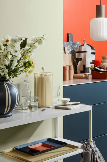 Edda tørkerullholder 28 cm fra danske Broste Copenhagen er en sylinderformet tørkerullholder med en gitterlignende utside som gjør at du kan se gjennom den, samtidig som designet gjør at papiret holdes på plass. Tørkerullholderen er laget av pulverlakkert jern og er perfekt å ha stående framme på kjøkkenbenken eller spisebordet.