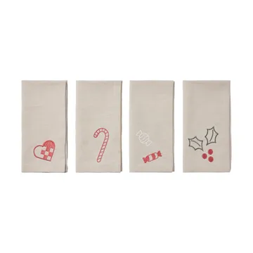 Fryd tøyserviett 45 x 45 cm 4 deler fra danske Broste Copenhagen er servietter laget av bomull pyntet med broderier i julesesong. De fine tøyserviettene skaper en koselig følelse og får gjestene dine til å føle seg godt ivaretatt ved julemiddagene.