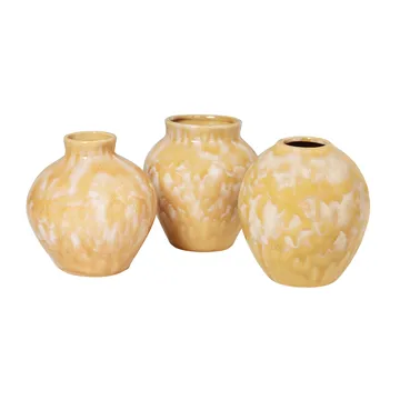 Med Ingrid keramikkvase 14,5 cm fra Broste Copenhagen får du en nydelig 3-pakning med likeverdige vaser i ulike former. Den glaserte overflaten til vasene skaper en struktur med vakre variasjoner som gjør hver vase unik. Plasser vasene sammen i et fint stilleben på skjenken i stuen, eller bruk dem hver for seg.