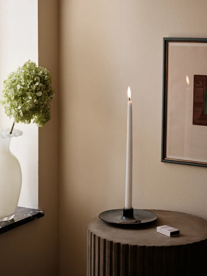 Nordic Sea lysestake fra Broste Copenhagen er laget av håndmalt steingods og har en glasert overflate som utstråler eleganse. Hver steingodslysestake er unik takket være de subtile variasjonene i produksjonen og tilfører et personlig preg til hjemmet ditt. En perfekt detalj for å skape atmosfære og stil.