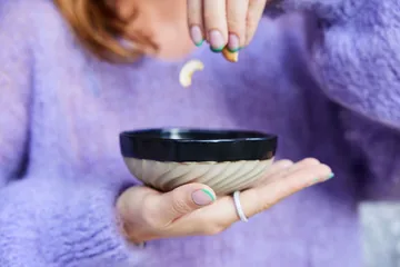 Swirl skål Ø 11 cm fra Byon er laget i stengods og er resultatet når keramikk blir håndverk på en moderne måte. Uregelmessig, rund, snirklete, organisk, overdimensjonert og med skjeve rotete striper. Den matt svartglaserte overflaten møter den ubehandlede råe, og kontrasten føles genuin. Skålen Swirl er solid uten å være tung. Den perfekte skålen til frokost, lunsj og middag.