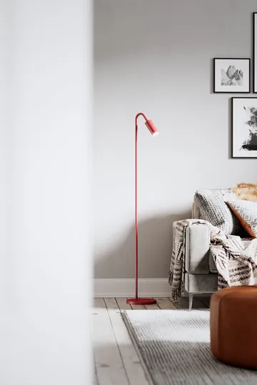 Curve gulvlampe 146 cm fra By Rydéns kombinerer rette linjer med buede former for en harmonisk følelse. Lampen i matt metall passer perfekt ved lenestolen som leselampe eller på soverommet. Ideell for innendørs bruk.