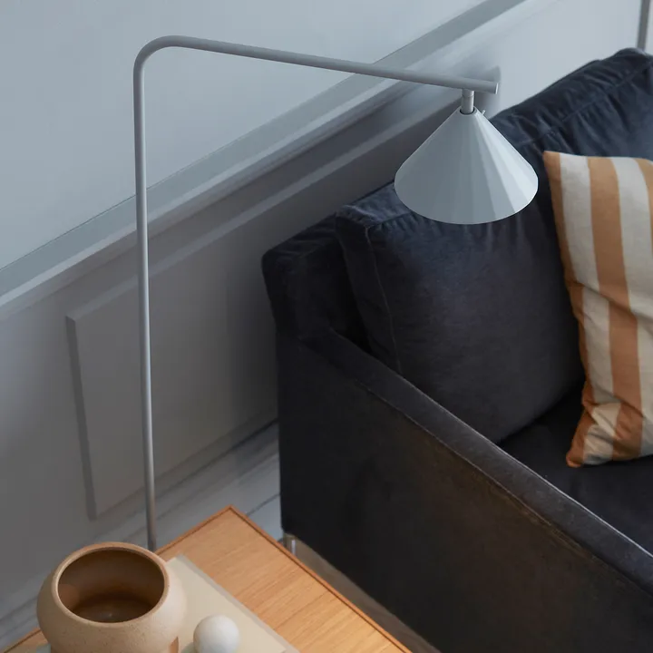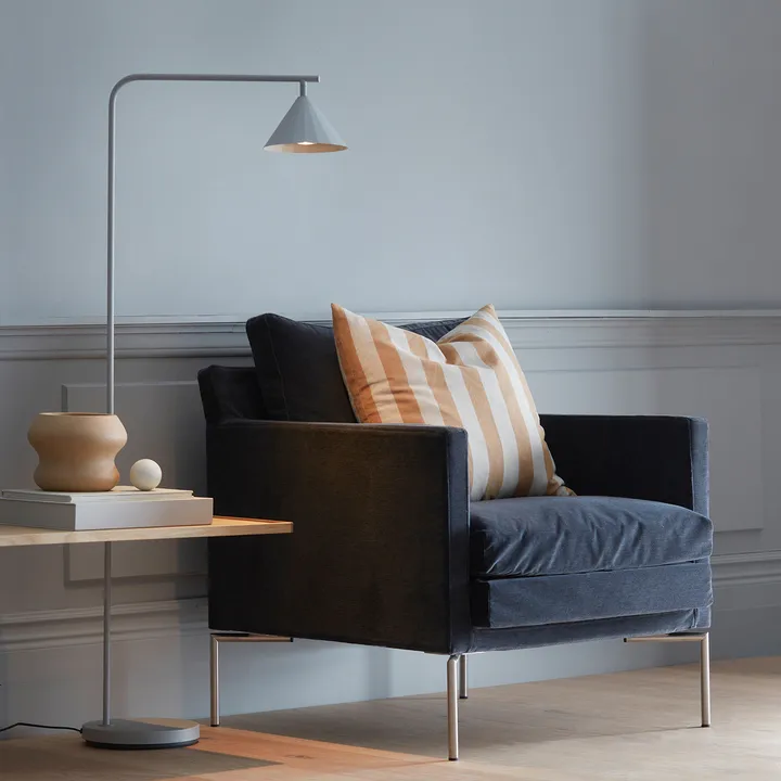 Rain gulvlampe fra svenske CO Bankeryd er en lampe der kombinasjonen av rette linjer og runde former skaper et balansert utseende mellom det minimalistiske og lekne. Lampeskjermens kjegleformede design fører tankene til en paraply. Skjermen kan vris, noe som er veldig praktisk når du for eksempel vil lese.