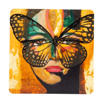 Golden Butterfly glassbrikke fra Carolina Gynning er laget av 100 % bjørk og gir bordet ditt et kunstnerisk preg. Glassbrikkene er både vakre og praktiske, med et stilrent sommerfuglmotiv som beskytter overflatene dine samtidig som det løfter borddekkingen.