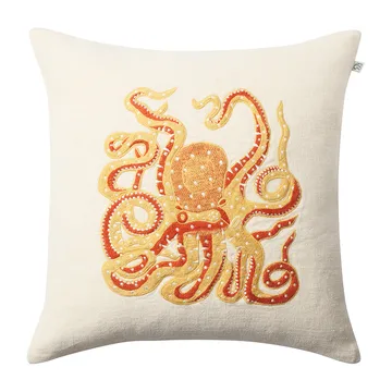 Embroidered Octopus putetrekk 50x50 cm fra Chhatwal & Jonsson er et dekorativt putetrekk som gir karakter til stuen eller sengen. Det håndlagde trekket i myk bomullsammet har en blekksprut stilfullt brodert på forsiden, et håndverk der maskin og håndarbeid møtes. Det avrundede motivet gir en leken men elegant følelse og passer fint sammen med andre tekstiler for en koselig og personlig atmosfære i hjemmet. Enkel å ta av og på — velg putetrekket for en detalj som gjør forskjell.