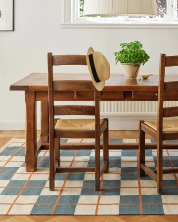 Haveli teppe 180x270 cm av Chhatwal & Jonsson er håndvevd i ull på tradisjonelle vevstoler, noe som gir en slitesterk og tidløs kvalitet. Det rutete mønsteret skaper et livfullt uttrykk og gjør teppet til en stilfull base i rommet. Den glatte overflaten gjør det enkelt å plassere under spisebordet eller i stuen, hvor det bidrar med både varme og struktur. Et holdbart teppe som forener håndverk og funksjon.