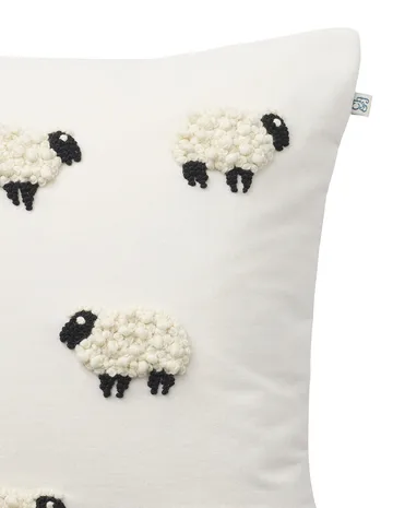 Sheep putetrekk 50 x 50 cm fra svenske Chhatwal & Jonsson er laget av bomullsammet med et dyktig håndknyttet mønster av ullne sauer på forsiden og en ensfarget bakside. Det myke putetrekket har en praktisk glidelås for enkel plassering av innerpute. Bruk Sheep på sengen i barnerommet eller for å lyse opp stemningen i stua.