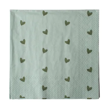 Heart pappersserviett 33x33 cm 20-pakk fra DBKD er en sjarmerende serviett i 100% papir med hjertemotiv designet av Sara Johansson. De små hjertene sprer varme og gjør hver dukning litt mer spesiell. Perfekt for kaffepauser, barnebursdager eller en hverdagmiddag som får en ekstra omsorgsfull detalj.