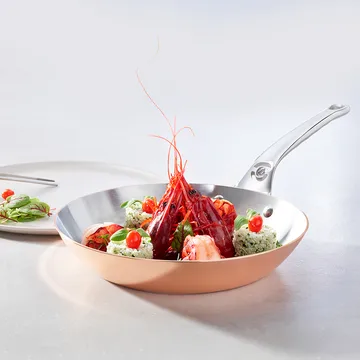 Prima Matera stekepanne induksjon fra franske de Buyer er en elegant og tidløs stekepanne. Med rask, effektiv og jevn varmefordeling får du perfekt resultat hver gang du bruker den, og den er også fin å servere maten i rett på bordet. Håndtaket er fastnaglet for et holdbart og komfortabelt grep.