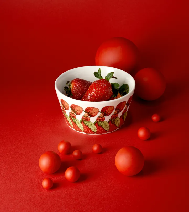 Familien Jordgubbe-bollen fra Design House Stockholm er en del i serien hvor Catharina Kippel har tolket Elsa Beskows elskede eventyr. Familjen Jordgubbe kommer fra boken "Lasse Liten i trädgården" hvor Lasse treffer Familjen Jordgubbe og mange andre figurer. Catharina Kippel har valgt ut visuelle deler fra fortellingen og omarbeidet dem til et fantastiske mønstre som faller i smak blant mennesker i alle aldre!