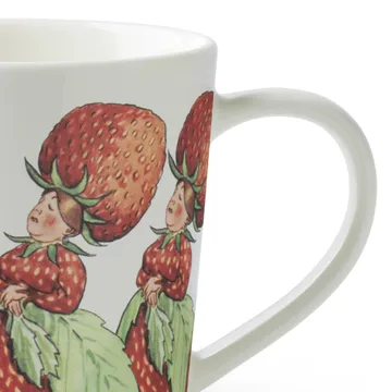 De klassiske og vidunderlige fortellingene av barnebokforfatteren og illustratøren Elsa Beskow er tolket av Catharina Kippel fra Design House Stockholm i en serie produkter med motiv fra de forskjellige fortellingene. Catharina har valgt ut visuelle deler fra de opprinnelige illustrasjonene og omarbeidet Elsas bilder til mønstre. Det søte Familjen Jordgubbe-kruset med hank har et motiv hentet fra boken Lasse Liten i trädgården. I denne fortellingen møter Lasse familien Jordgubbe (Jordbær) og andre karakterer når han er ute og leker med ballen sin. Kombiner kruset med andre fine produkter fra Elsa Beskow-kolleksjonen.
