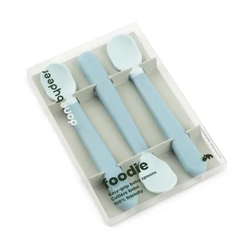 Easy-grip foodie skje 3-pk fra Done by deer er laget av 100 % polyeten og helt fri for BPA og ftalater. Disse skjeene i serien Croco har små skåler som er perfekte for barnets første måltider. Håndtakene med mykt grep sikrer et stødig grep ved mating.