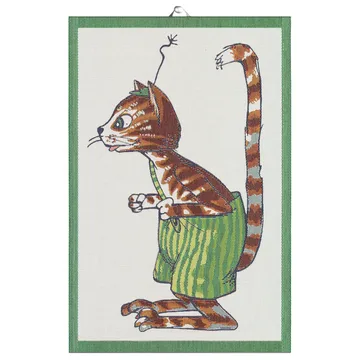 Et vevd kjøkkenhåndkle i 100 % økologisk bomull fra det tradisjonsrike veveriet Ekelund. Med et lekent motiv du vil kjenne igjen fra bøkene om Gubben og Katten.
