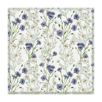 Vevd duk i økologisk bomull fra svenske Ekelund, som er kjent for sine kvalitetstekstiler. På den mønstrede bomullsduken finner du både prestekrager og kornblomst, to typisk skandinaviske sommerblomster.