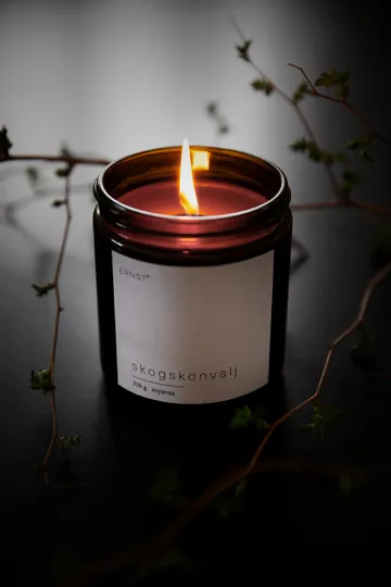 Ernst duftlys i glass med lokk Ø 7,2 cm har en nydelig, myk duft og kommer i en minimalistisk brun glassbeholder med hvit etikett og sort metallokk. Selve duftlyset er laget av soyavoks som har lang brennetid uten å avgi noen gifter. Sett Ernst duftlys på et nøye utvalgt sted og kjenn hvordan den gode duften sprer seg rundt i hjemmet.