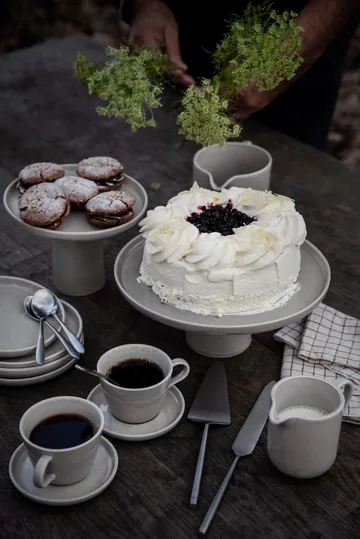 Ernst kakefat Ø 27 cm fra ERNST er et elegant porselensfat som løfter kaffestunden. Del av Ernst-serien, det runde kakefatet har en tidløs form og passer like godt til festbakverk som til kveldens enkle dessert. Kombiner med øvrige deler i serien for et harmonisk borddekking som føles innbydende og gjennomtenkt. Et allsidig fat som blir en naturlig del av kaféhjørnet hjemme og gjør serveringen både enkel og vakker.