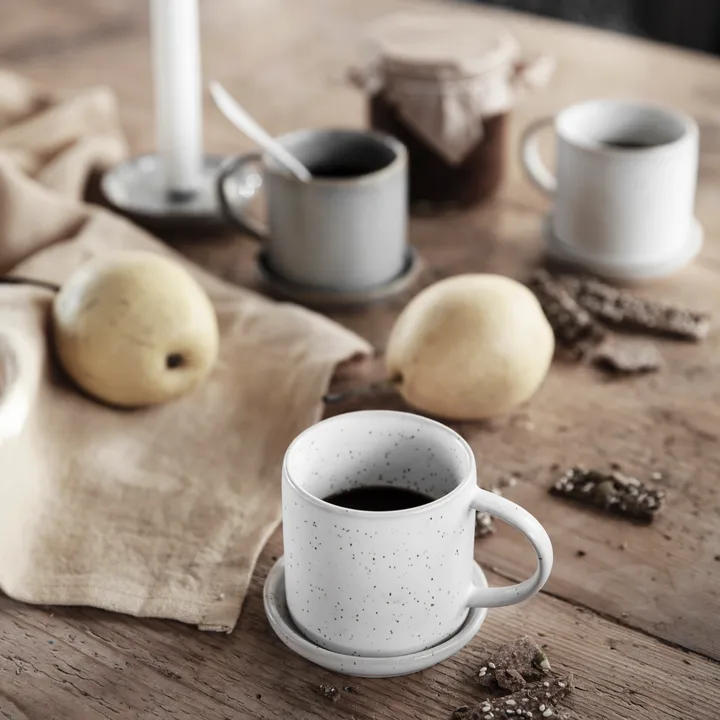 ERNST kopp med fat er en glasert kaffekopp i rustikt steingods. Perfekt for morgenkaffen eller kaffepausen!