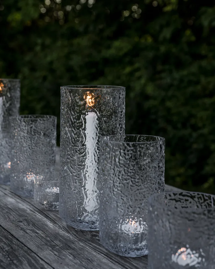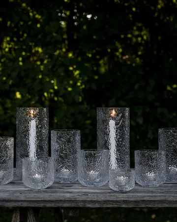 Ernst mønstret lyslykt for kronelys er laget i glass og har et unikt mønster som gir et varmt og mykt lys. Den passer utmerket for å skape en fredfull atmosfære, både alene og i gruppe med andre lyslykter. En enkel men elegant detalj som gir liv og varme til hjemmet ditt.