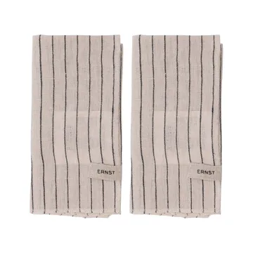 Ernst servietter 2-pakning stripete 40 x 40 cm fra svenske Ernst har et vakkert mønster av krokete striper som skaper et stilfullt og samtidig rustikt uttrykk. Servietten passer perfekt til et herlig dekket bord for familie og venner, men også midt i hverdagen. Lag en fin bretting eller la servietten være stilren som den er og plasser den ved siden av tallerkenen.