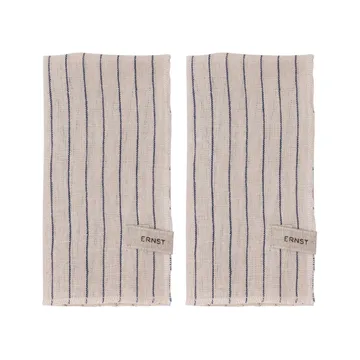 Ernst servietter 2-pakning stripete 40 x 40 cm fra svenske Ernst har et vakkert mønster av krokete striper som skaper et stilfullt og samtidig rustikt uttrykk. Servietten passer perfekt til et herlig dekket bord for familie og venner, men også midt i hverdagen. Lag en fin bretting eller la servietten være stilren som den er og plasser den ved siden av tallerkenen.