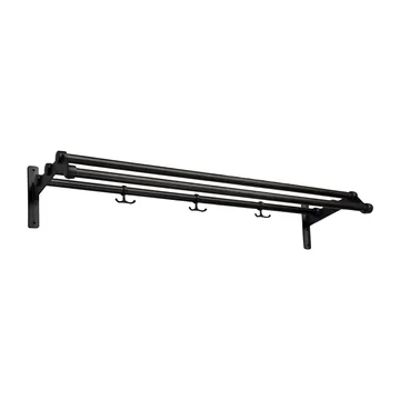 Nostalgi 291 hattehylle 100 cm fra Essem Design er etterfølgeren til klassikeren Nostalgi og skiller seg ut ved å være en dyp hattehylle med mer plass til kleshengere. Hyllens konsoller inneholder fire rundstaver og kommer med tre ankerkroker som kan plasseres på valgfri rundstav. Nostalgi er fleksibel ettersom du kan gjøre den til en kort hattehylle ved å korte ned stavene for å passe til en mindre entré. Hvis du vil ha en lang hattehylle, kan du forlenge den ved hjelp av en påbyggingsdel, og på den måten blir den akkurat så lang du ønsker. Kombiner gjerne hattehyllen Nostalgi 291 med skohyllen Nostalgi for en helhetlig stil i entréen din.