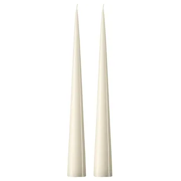 Ester & Erik kjeglelys er eksklusive håndstøpte lys som passer til alle anledninger. Lysene har et elegant kjegleformet design som gjør at de kan stå på egen hånd, med andre ord er det ikke nødvendig med en lysholder. Plasser lyset på et lysfat eller et brett laget av enten glass eller marmor. Lysene er selvslukkende og blir en stemningsfull detalj på det dekkede bordet. Kommer med matt aller lakkert finish.