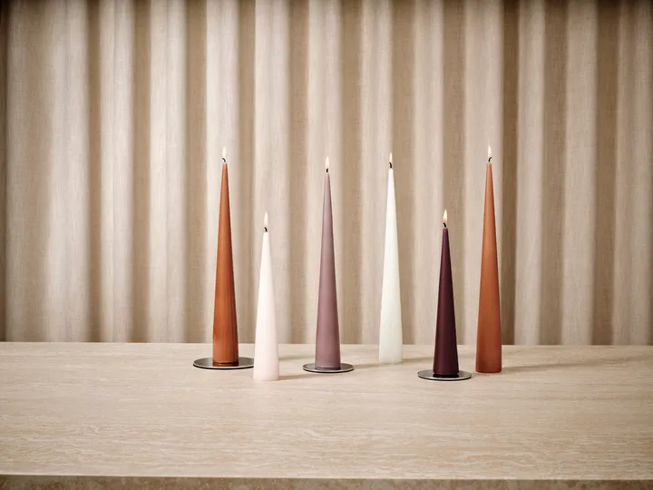 Ester & Erik kjeglelys er eksklusive håndstøpte lys som passer til alle anledninger. Lysene har et elegant kjegleformet design som gjør at lyset kan stå på egen hånd, med andre ord er det ikke nødvendig med en lysholder. Lysene er selvslukkende og blir en stemningsfull detalj på det dekkede bordet. Kommer med matt eller lakkert finish.