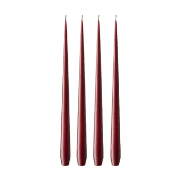Vinrøde lys fra det danske merket Ester & Erik for deg som liker en litt mer dempet og naturnær fargeskala. Lysene er håndstøpte med en elegant avsmalnende form øverst. Den nederste delen er kjegleformet for å passe til de fleste lysestaker. Kommer til sin rett både i lave og høye lysestaker. Finnes med matt eller lakkert overflate.