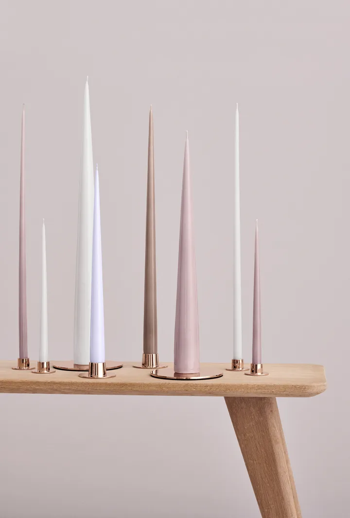 Ester & Erik lysfat er en vakker dekorasjon med et enkelt og fint design som passer til alle Ester & Eriks håndstøpte lys. Den runde platen har en matt finish og er spesielt utformet for å passe til kubbelys og kjeglelys. Lysene holdes på plass ved hjelp av tre spikre i midten av lysfatet. Plasser det elegante lysfatet sammen med fine lys på stuebordet, middagsbordet eller på en skjenk i gangen.