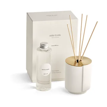 ester & erik duftpinner kommer til å skape en koselig og innbydende atmosfære så snart du går inn døren. Du bestemmer selv hvor intens duften skal være ved å ha flere eller færre pinner i keramikkbeholderen. En fin detalj som er pent å ha fremme i alle rom!