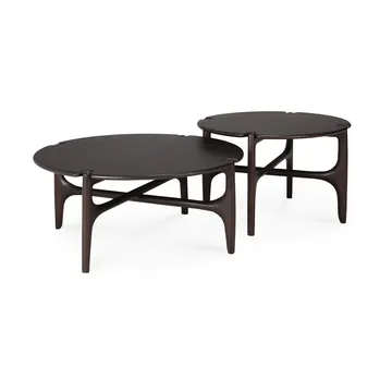 PI Salongbord Ø 65 cm fra Ethnicraft er et vakkert bord laget av mahogni og lakkert for å fremheve treets naturlige karakter. Designet av Alain van Havre for Ethnicrafts PI-serie, hyller dette bordet naturens formgivning med sine sterke kurver og linjer. Den interessante formen gjør det til et balansert innslag i hjemmet, perfekt for å sette fra seg drikke, lett lesning og andre nødvendigheter.