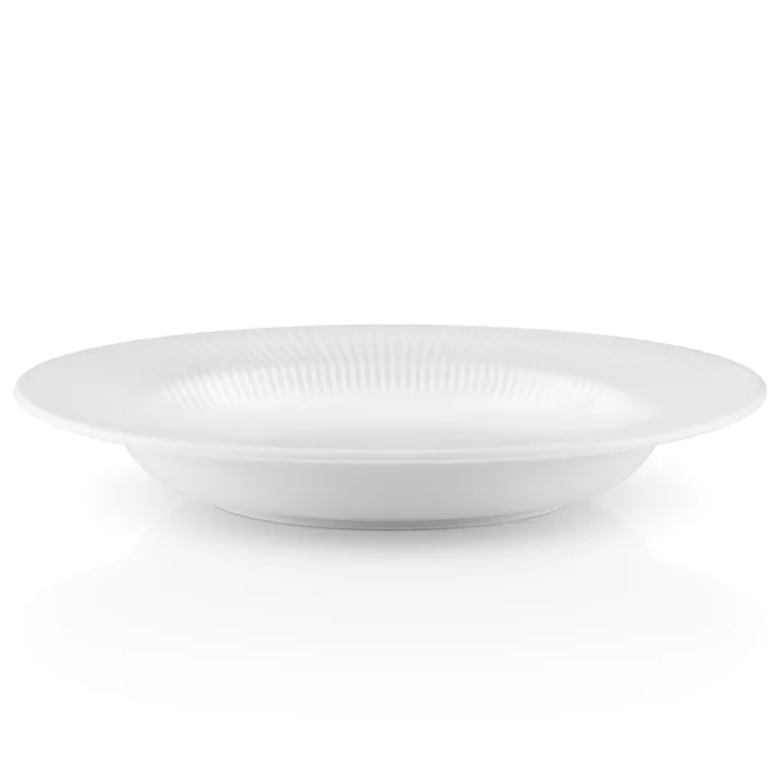 Den dype tallerkenen Eva Trio Legio Nova passer utmerket når du vil skape en oppdekning med restaurantfølelse. Designen er inspirert av det danske kokkelandslaget, deres matkunst og den omsorg de legger i sitt håndverk. Tallerkenen er laget i slitesterkt porselen med rifler langs kantene som rammer inn maten på en vakker måte. Perfekt utmerket å bruke både til hverdags og til fest!