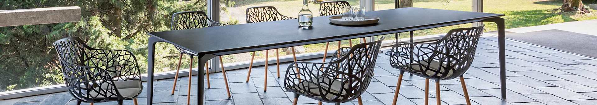 Fast skaper utemøbler som harmonerer med utemiljøet og visker ut grensene mellom inne og ute. De beskriver sin design som bærekraftig og tidløs både når det gjelder produksjonsprosessen og formgivningen.