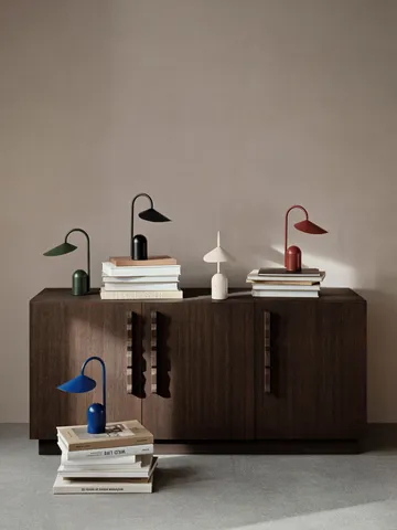 Arum bærbar lampe fra Ferm Living er laget av pulverlakkert jern og aluminium, noe som gir den en glatt og holdbar finish. Denne lille, bærbare LED-lampen er oppladbar via USB-C, noe som gjør det mulig å skape en koselig atmosfære hvor enn du befinner deg. Lampen har en blomsterbladsformet skjerm som ser ut til å sveve fra lampefoten, noe som gir en elegant balanse. Den har også en tre-trinns touch-dimmer for justerbar omgivelsesbelysning.