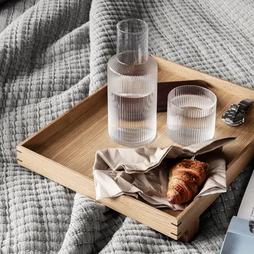 Bon trebrett small fra Ferm Living er et vakkert trebrett med tydelige japanske impulser som gir et enkelt og luftig uttrykk. Formgitt for å være både dekorativt og funksjonelt, har brettet synlige skjøter i hjørnene og er laget i massiv eik for holdbarhet og en tidløs følelse. Bruk det som serveringsbrett til frokost, som nattbord for kveldens lesning eller som en stilfull avlastningsflate i gangen. En allsidig detalj som løfter hjemmets hverdagsøyeblikk.