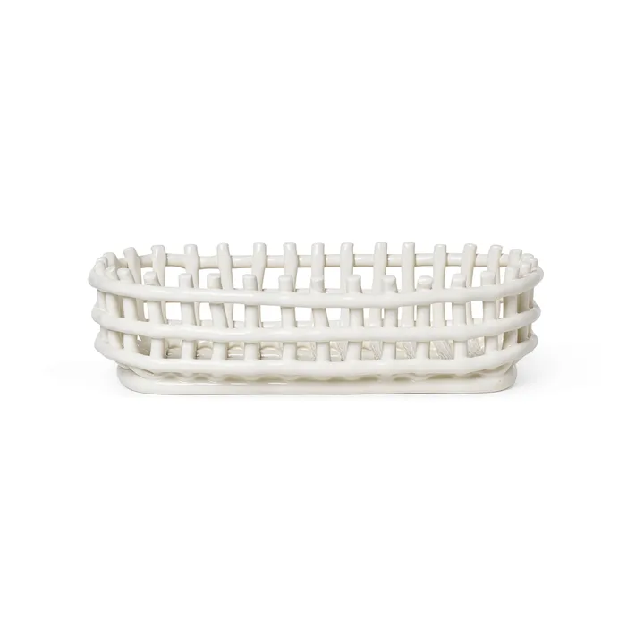 Ceramic flettet kurv oval 15 x 30 cm - Off-white - Ferm Living