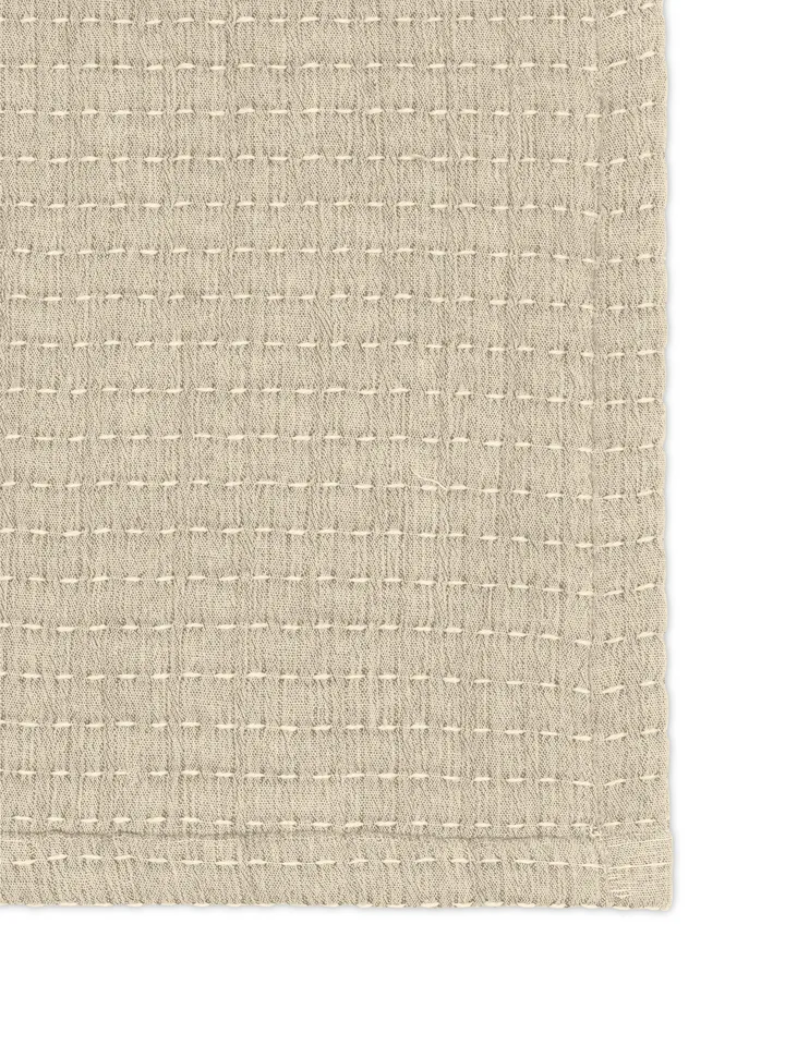 Daze sengeteppe 240 x 250 cm fra Ferm Living er et quiltet sengeteppe i bomull som gir soverommet ditt en rolig og hjemmekoselig følelse. Hålsømmene skaper en lett struktur og ekstra komfort, samtidig som den spesielt myke overflaten inviterer til hvile. Takket være den generøse størrelsen dekker det sengen pent og fungerer like godt som en ryddig avslutning på oppredningen som for ekstra varme på kjøligere netter. En tidløs og innbydende detalj som løfter soverommets atmosfære.