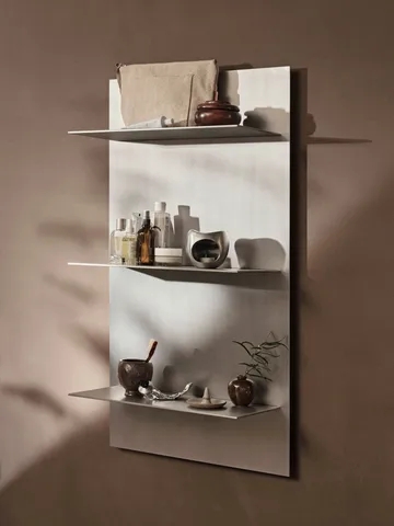 Lager vegghylle triple 55x100 cm fra Ferm Living er laget i aluminium og inspirert av industriell og brutalisme estetikk. Hylle tilbyr praktisk oppbevaring og enkel veggmontering med et fransk klyvsystem. Den jevne avstanden mellom seksjonene gjør at du enkelt kan plassere to over hverandre for å få en høyere hylle.