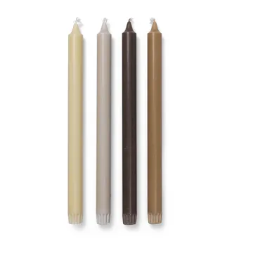 Pure candles 4-pakning fra danske Ferm Living består av fire stearinlys i ulike, jordnære toner. Plasser lysene i favorittlysestaken din på spisebordet for en ekstra stemningsfylt atmosfære.