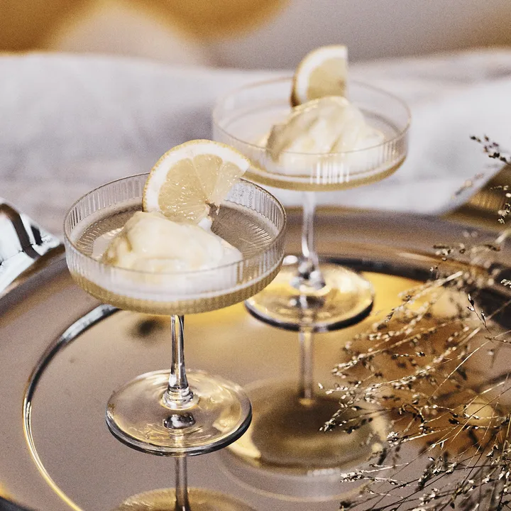 Champagneglassene Ripple fra Ferm Living vil passe til alle festlige tilstelninger. Hvert glass er munnblåst med en vakker bølget overflate, og det gir glasset et dynamisk og energisk uttrykk. Glassene er ikke bare perfekte til musserende viner, bruk den til for eksempel serveringsskåler eller hvorfor ikke dessertskåler?