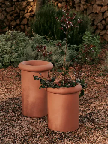 Rollo krukke Ø31x46 cm fra Ferm Living kombinerer skulpturell form med funksjonelt design. Laget av terrakotta med en elegant glasert finish, gir denne krukken en moderne og stilren følelse. Den distinkte kanten forsterker dens karakter, mens det medfølgende fatet hjelper til med å håndtere vannstrømmen. Passer både innendørs og utendørs, men variasjoner i utseende kan forekomme på grunn av naturmaterialets egenskaper. En perfekt løsning for stilfull planting.